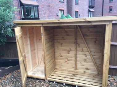 The Log & Kindling Store is perfect for those who have log burners for the winter. With an open front to season the logs during the summer time and a side compartment to keep your kindling and chimney cleaning equipment dry.