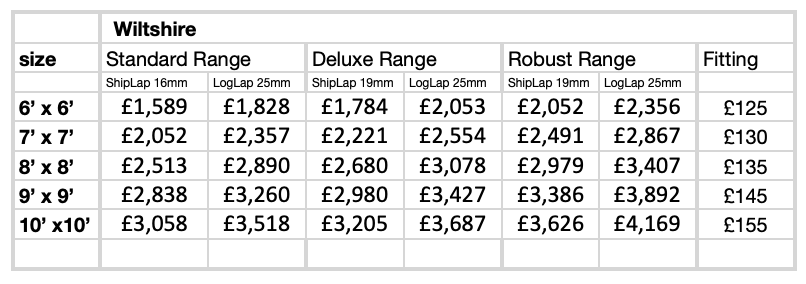 | Additional Frame Ledge and Braced Door | £295 (With /or without windows) |